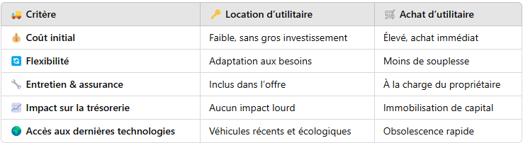 Grâce à cette récupération de TVA, le coût réel de la location de véhicules utilitaires diminue considérablement, offrant aux entreprises une solution financièrement plus attractive qu’un achat comptant ou à crédit.